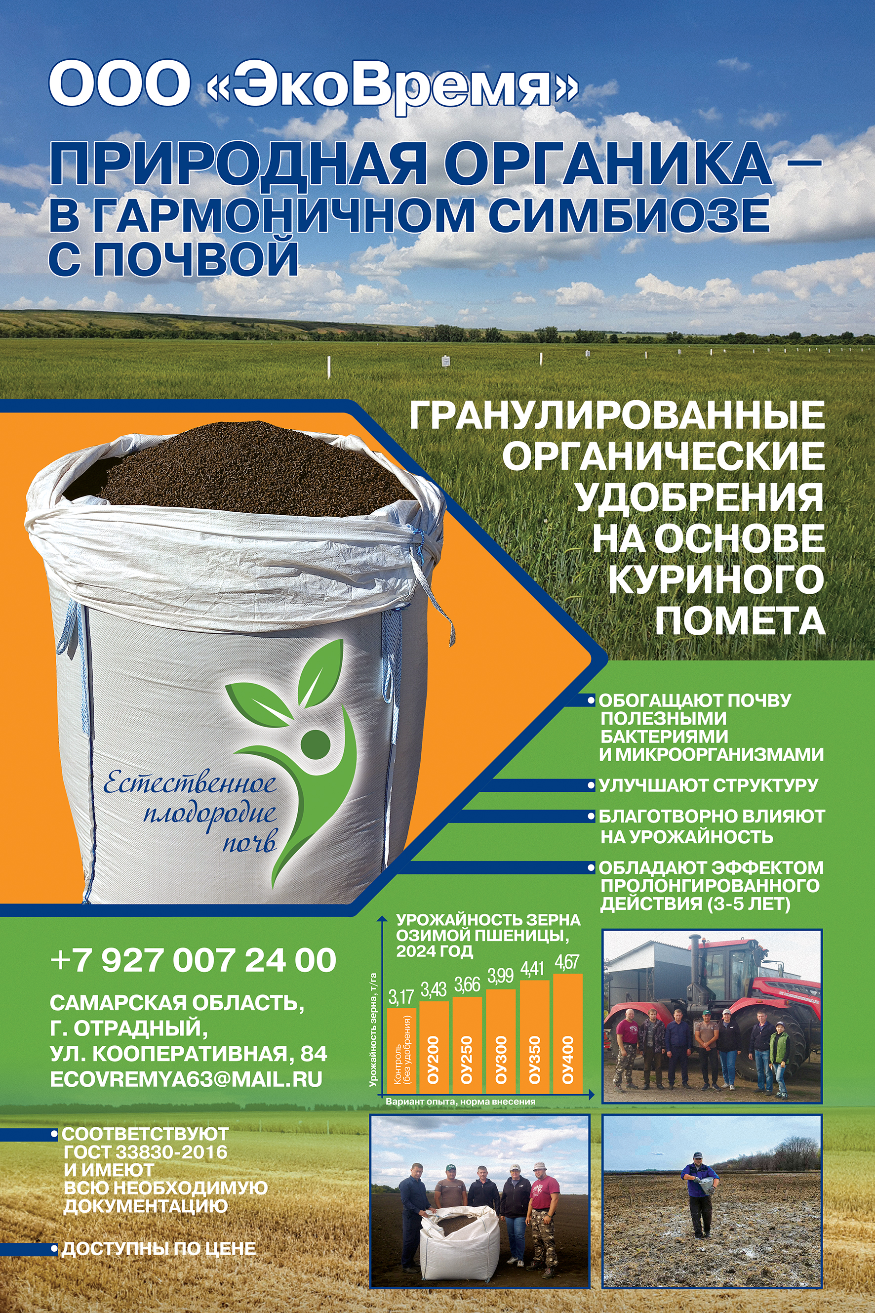 - Обеспечивает сбалансированное питание всех сельскохозяйственных культур и создает условия для получения экологически чистой продукции
